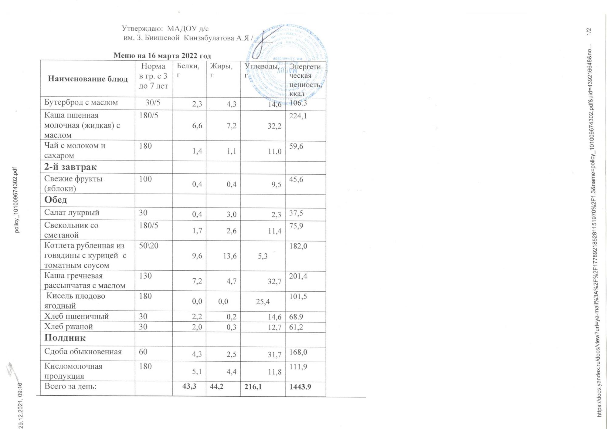 Режим дня на холодный период времени на 2018-2019 учебный год