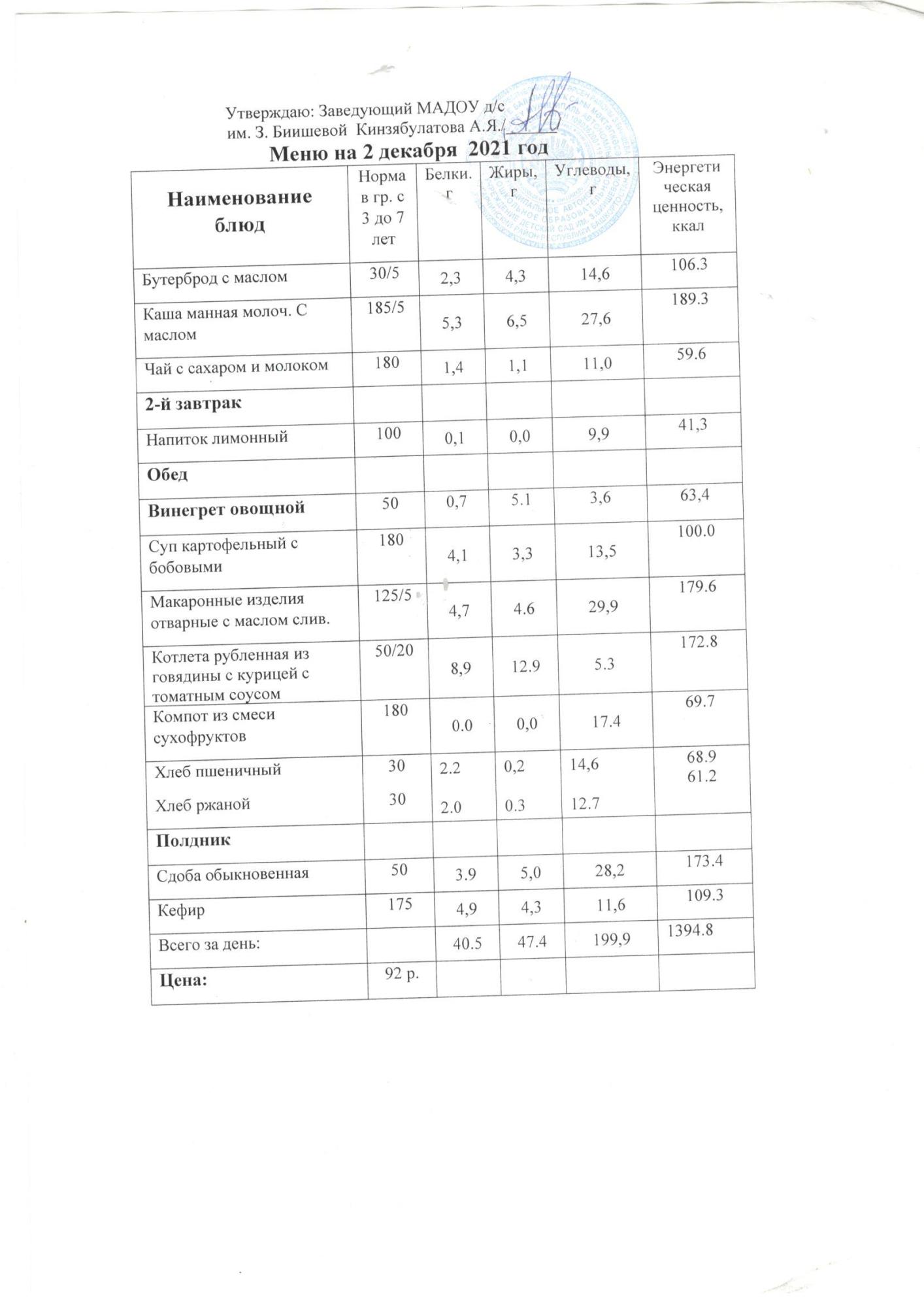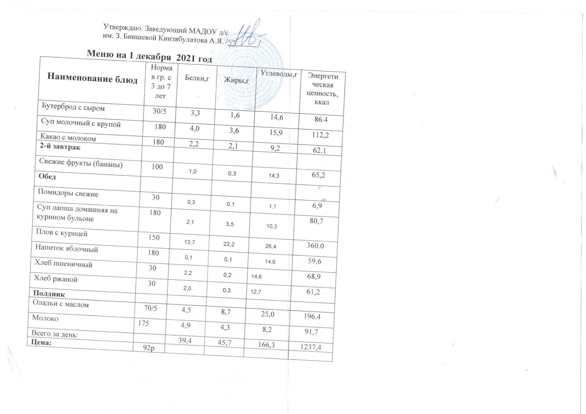 (меню на 1.12.2021г.)