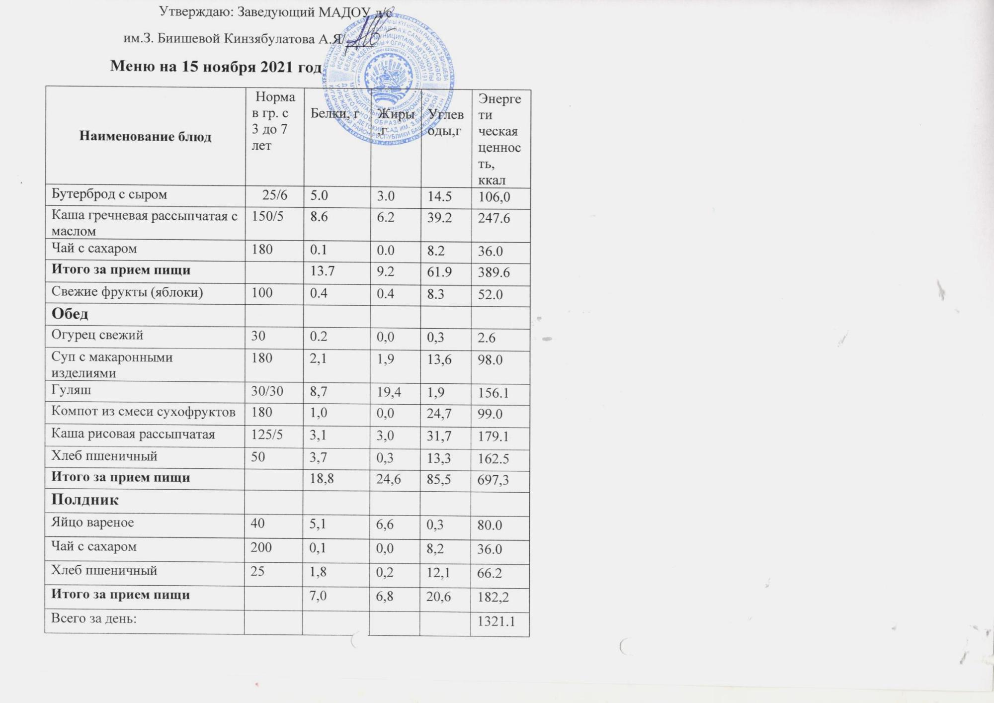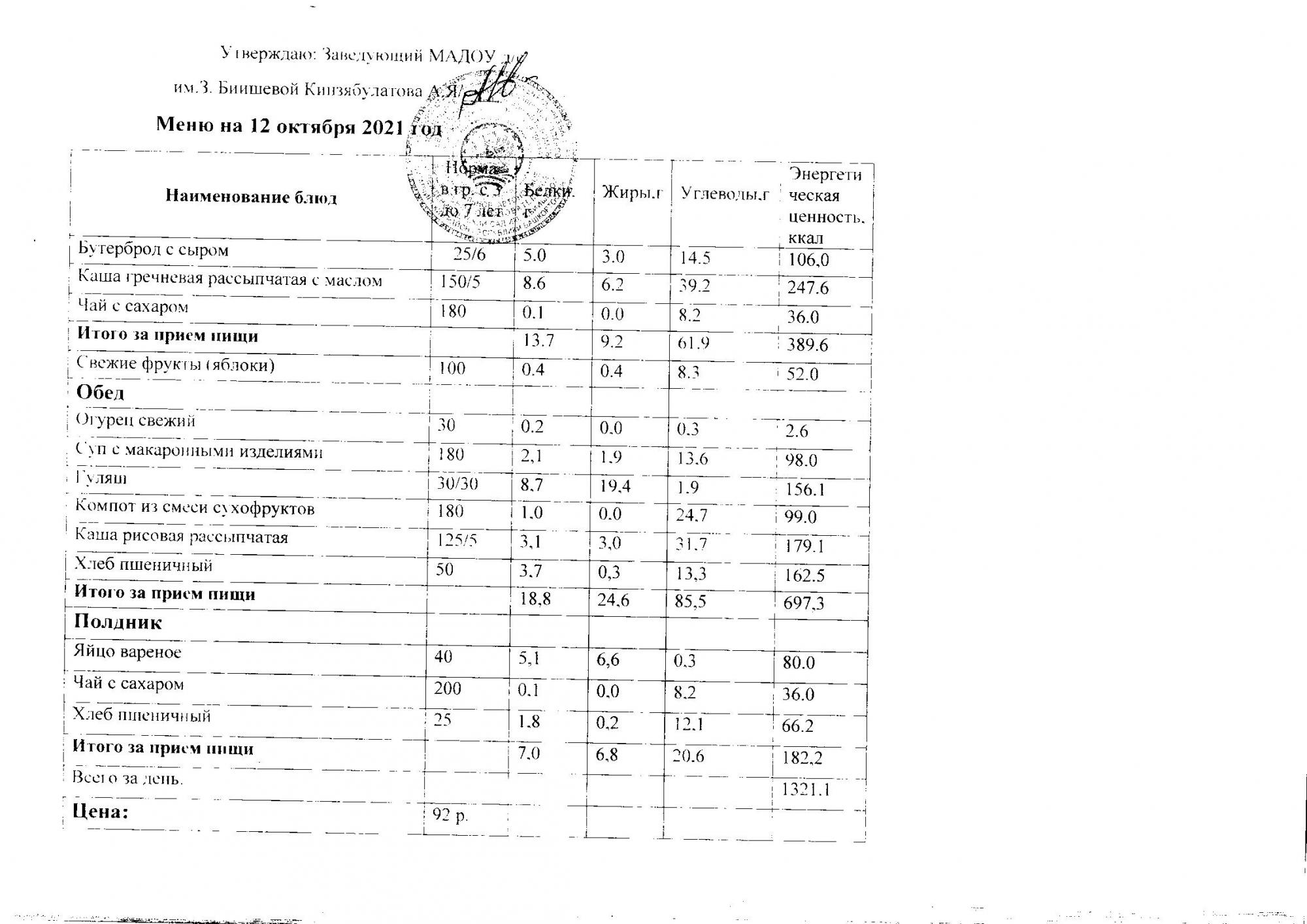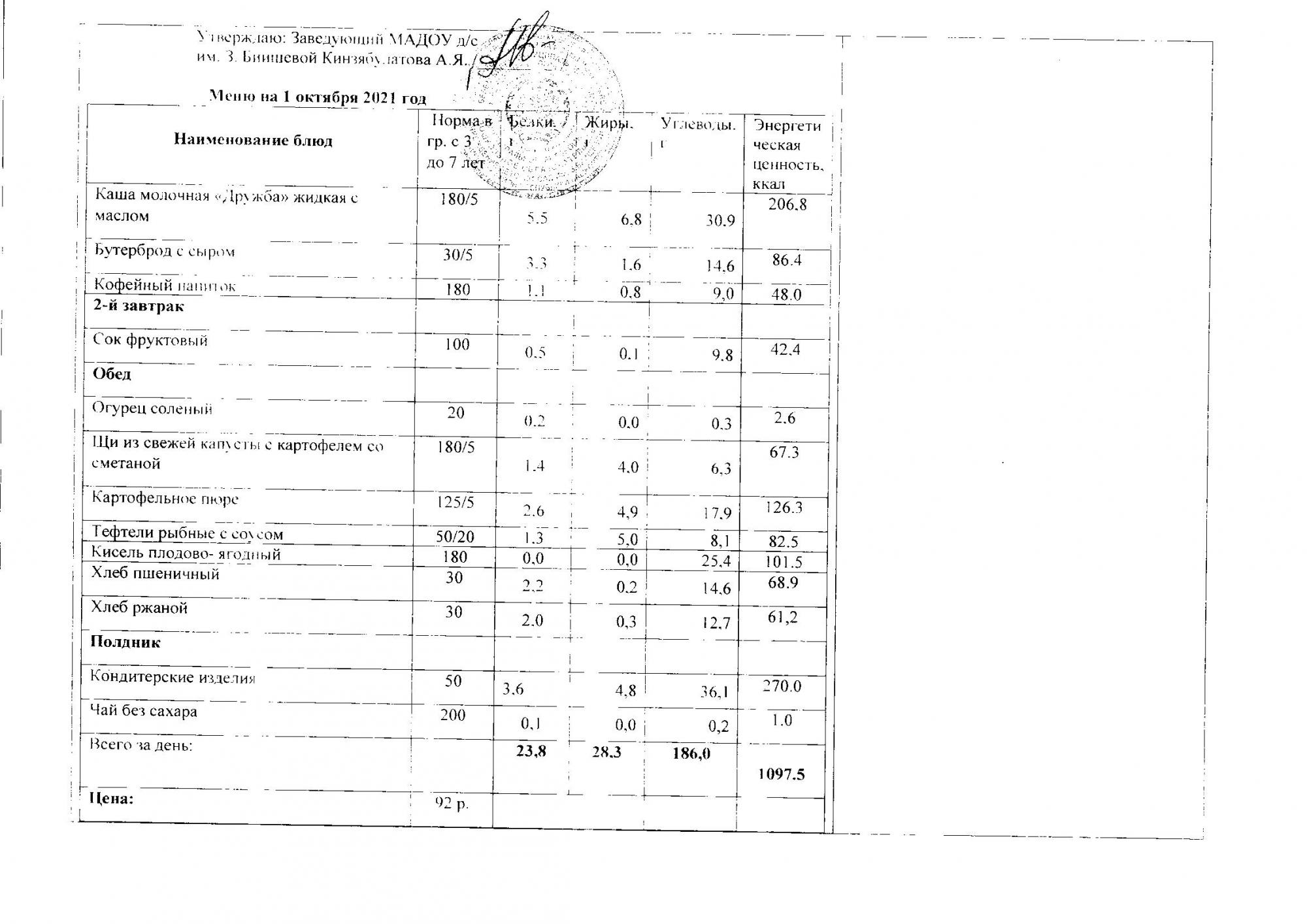 Режим дня на холодный период времени на 2018-2019 учебный год