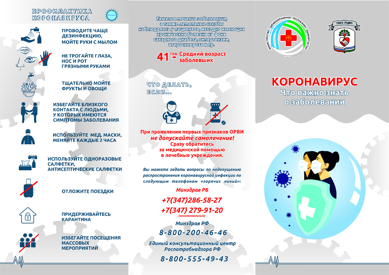 Самым лучшим способом предупреждения и замедления передачи вируса является распространение информации о вирусном возбудителе COVID-19, вызываемом им заболевании и механизмах его распространения. Для защиты себя и других людей от заражения следует часто мыть руки или обрабатывать их спиртосодержащим антисептиком и не прикасаться к лицу.